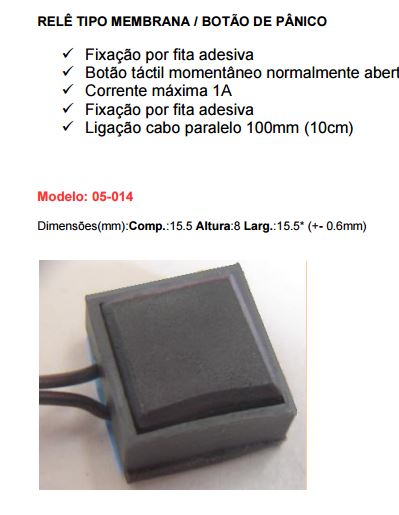 Botão de pânico membrana chave de piso 1 contato NA 1Amp