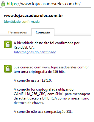 Com relação à segurança no tráfego de dados, toda transação que envolver pagamento, seja por cartão de crédito ou não, estará encriptada com a tecnologia SSL (Secure Socket Layer). Isso significa que só a loja tem acesso a estes dados. Quando você preenche os dados e nos envia, eles são criptografados, o que faz com que durante o trajeto pela Internet fiquem irreconhecíveis, assegurando a confidencialidade.